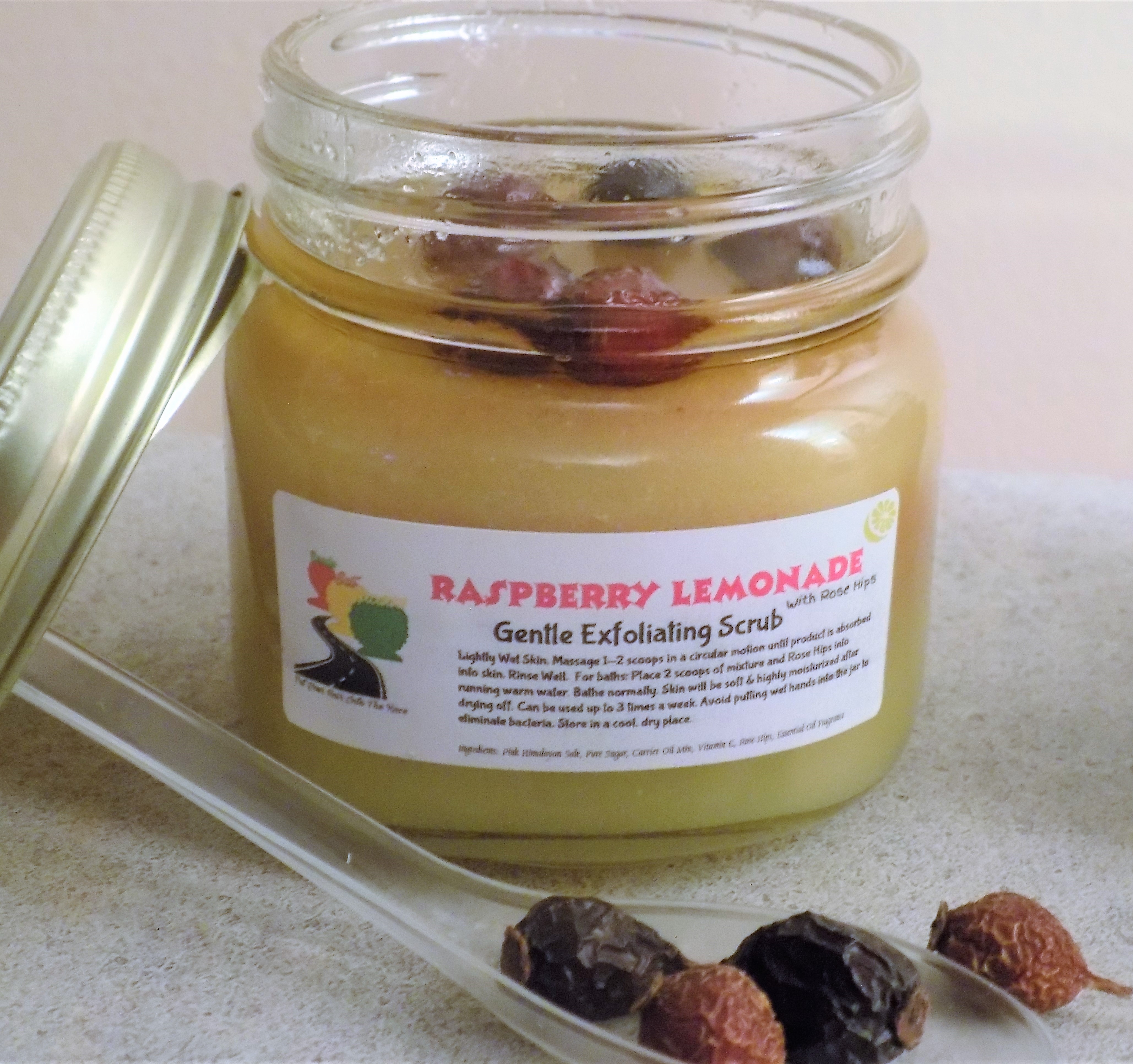 This Body Scrub includes Sea Salt, Pure Sugar, Rosehips and a blend of natural & organic oils that will soften & nourish your skin! It comes in a 8 oz glass jar.